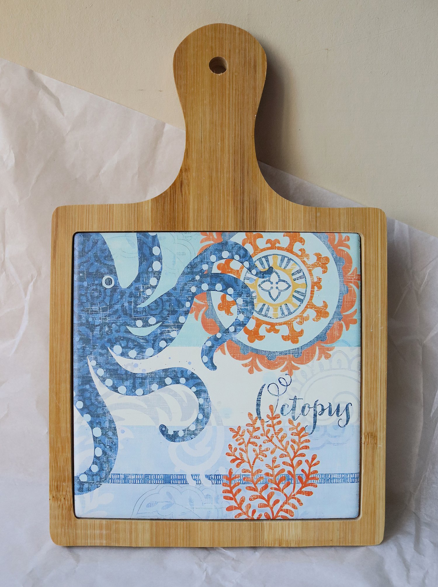 Eco-Friendly Bamboo and Ceramic Trivet with Octopus Design – Nautical Kitchen Decor
