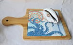 Add a splash of ocean life to your home with this handcrafted bamboo trivet featuring a beautifully illustrated blue octopus surrounded by corals and marine motifs. The combination of natural bamboo and ceramic ensures both durability and elegance.