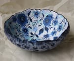 Handcrafted Paper Mache Bowl with Blue Floral Design – Rustic Art Home Decor