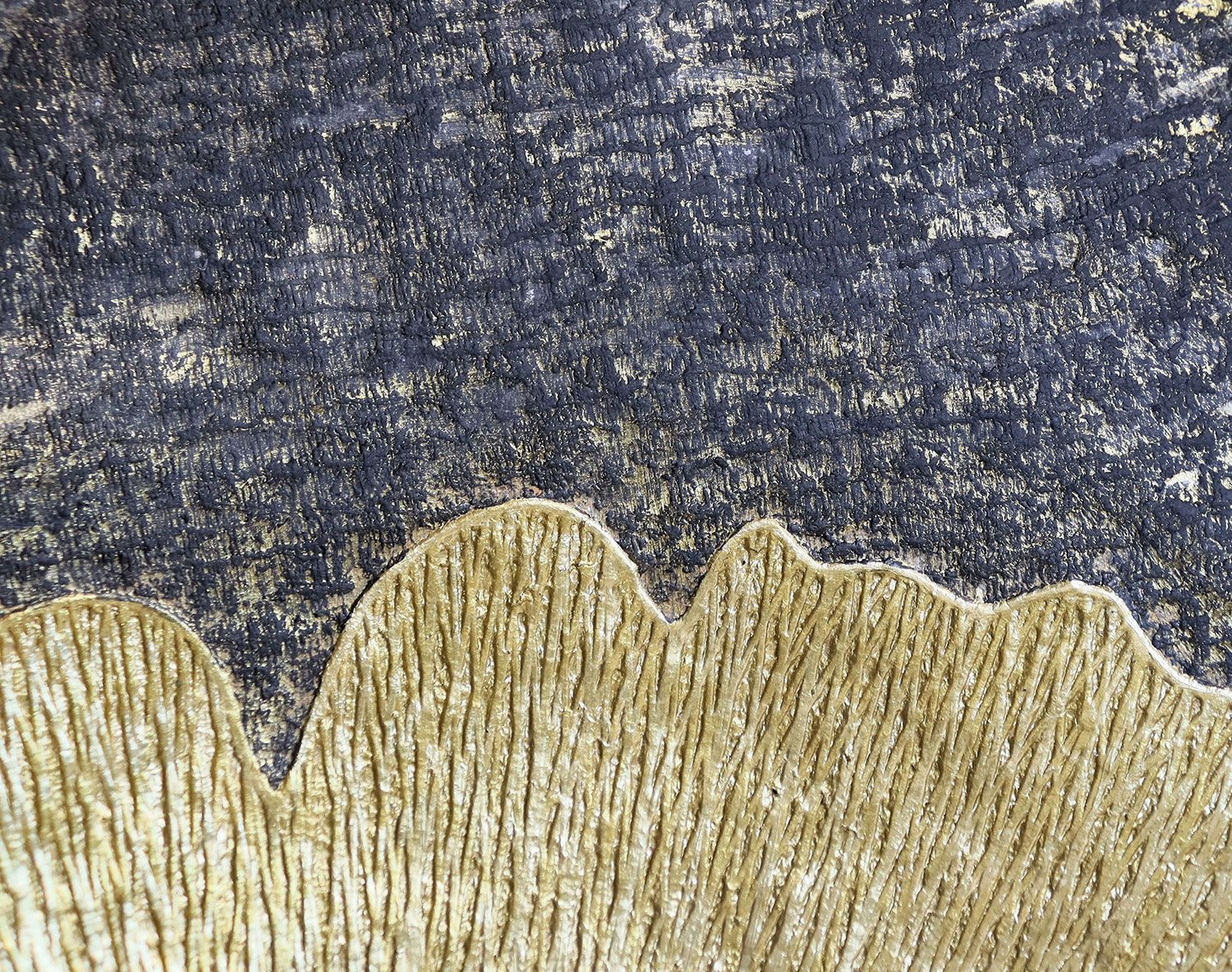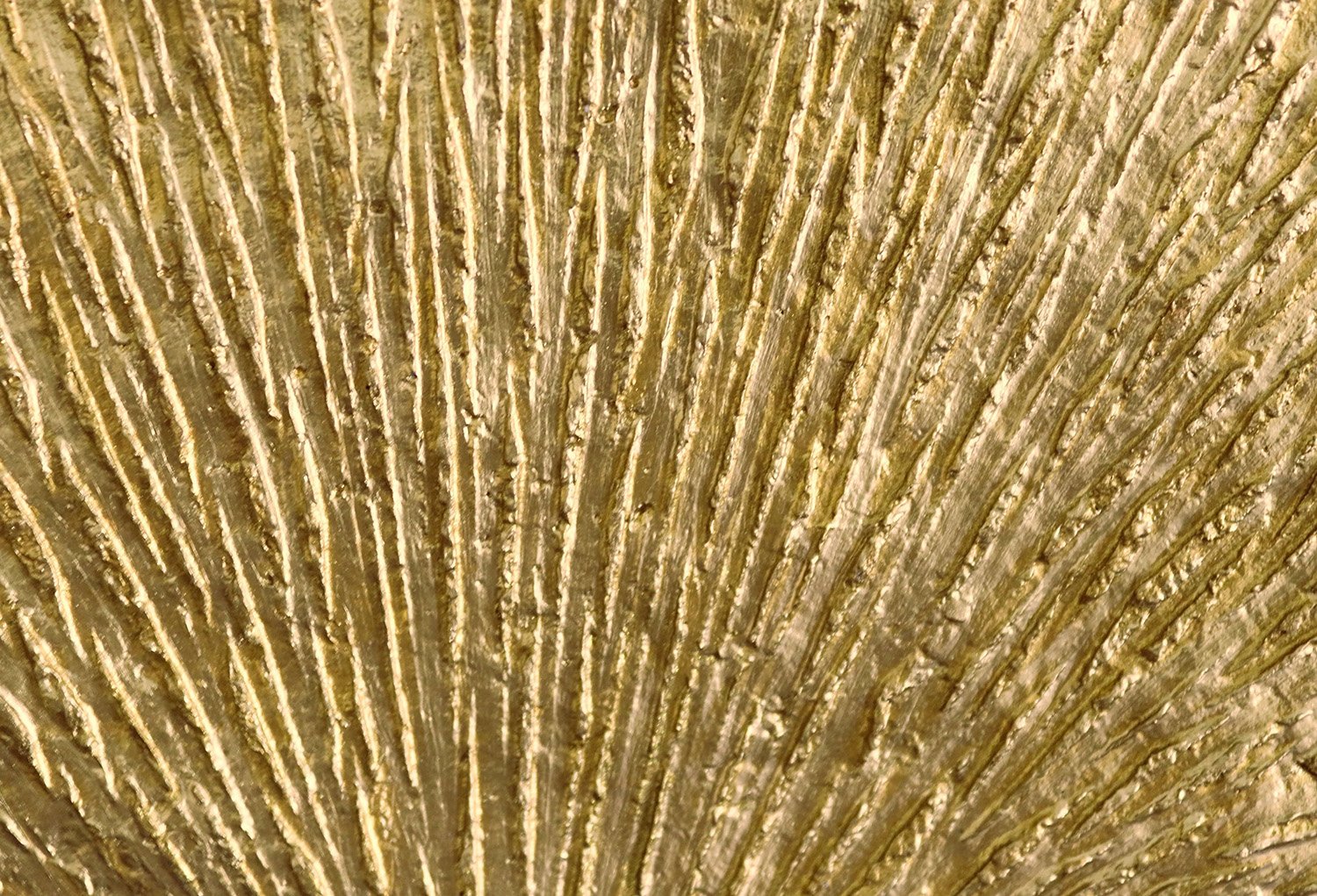 Large 50cm paper mache wall plate with golden ginkgo leaf relief. Handmade, eco-friendly wall art in natural grey with a touch of gold.