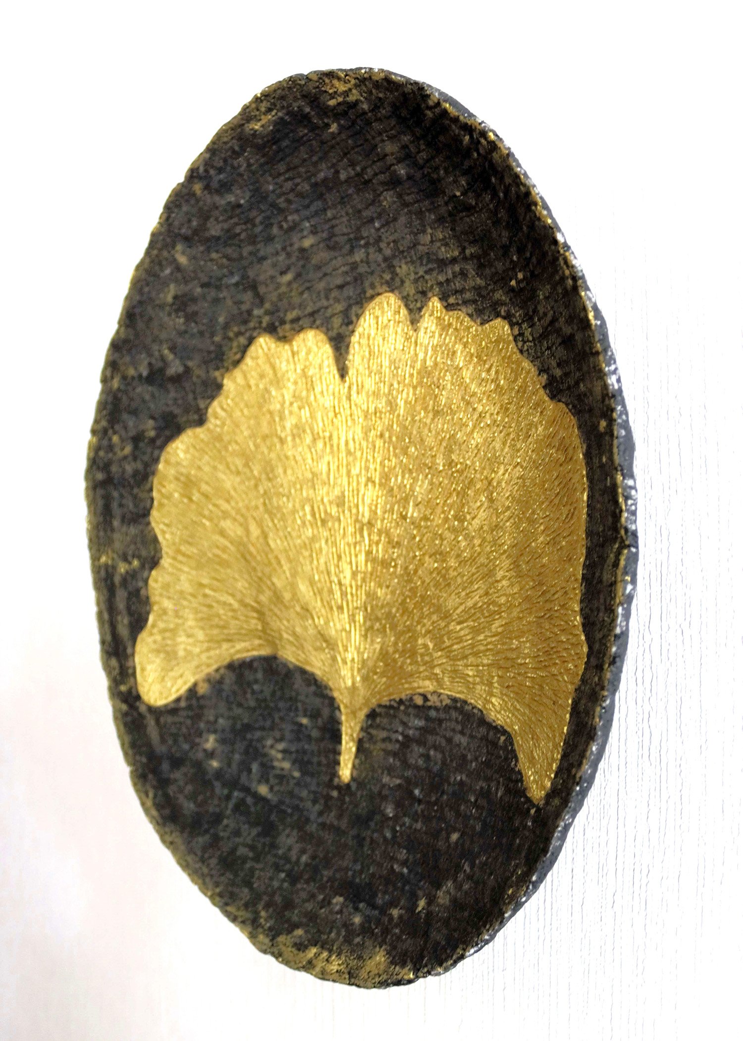 Golden Ginkgo Biloba Leaf on Paper Mache Wall Decor | Recycled Papier Wall Hanging Plate