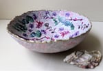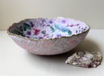 Handmade Paper Mache Bowl with Floral Decoupage and Gold Rim | ArtMood