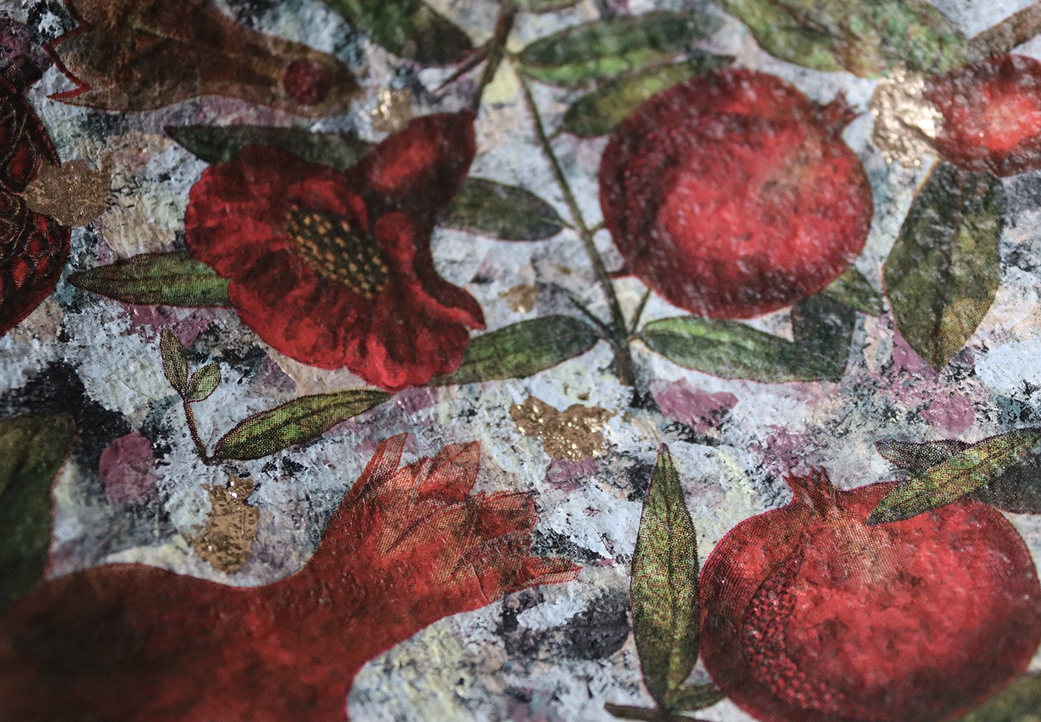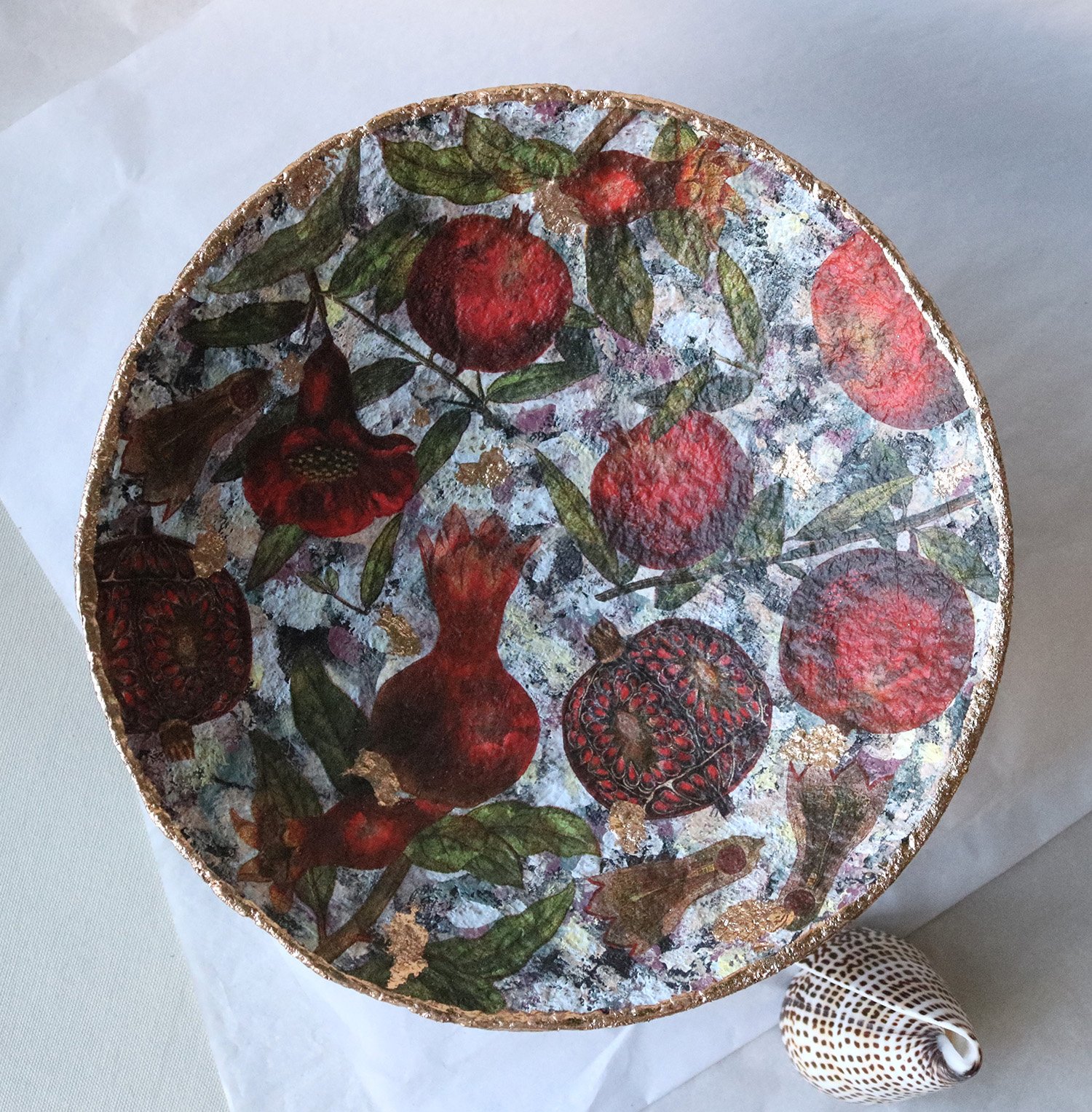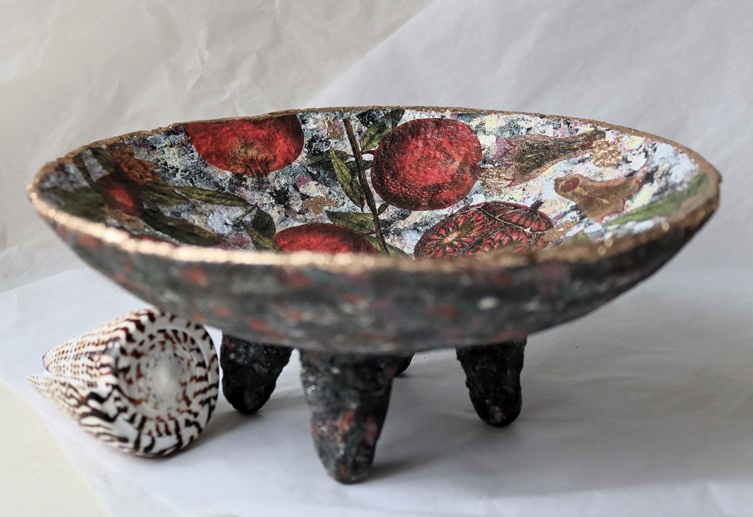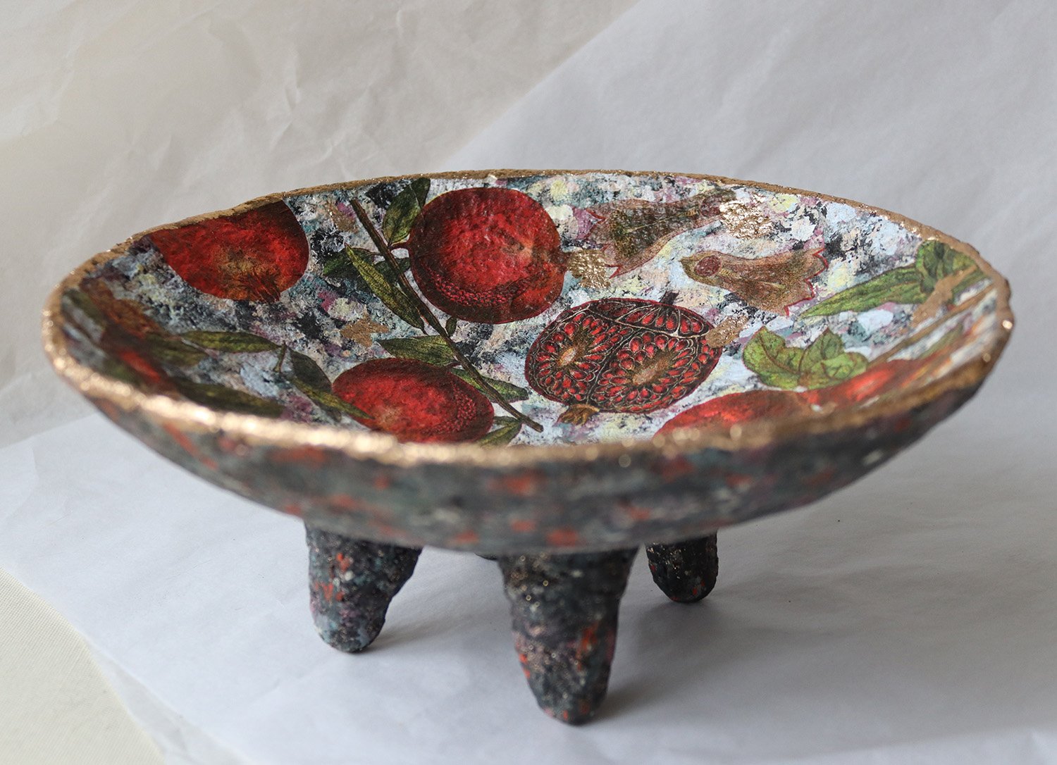 Handmade Paper Mache Bowl with Pomegranates | Eco Art Decor | ArtMood