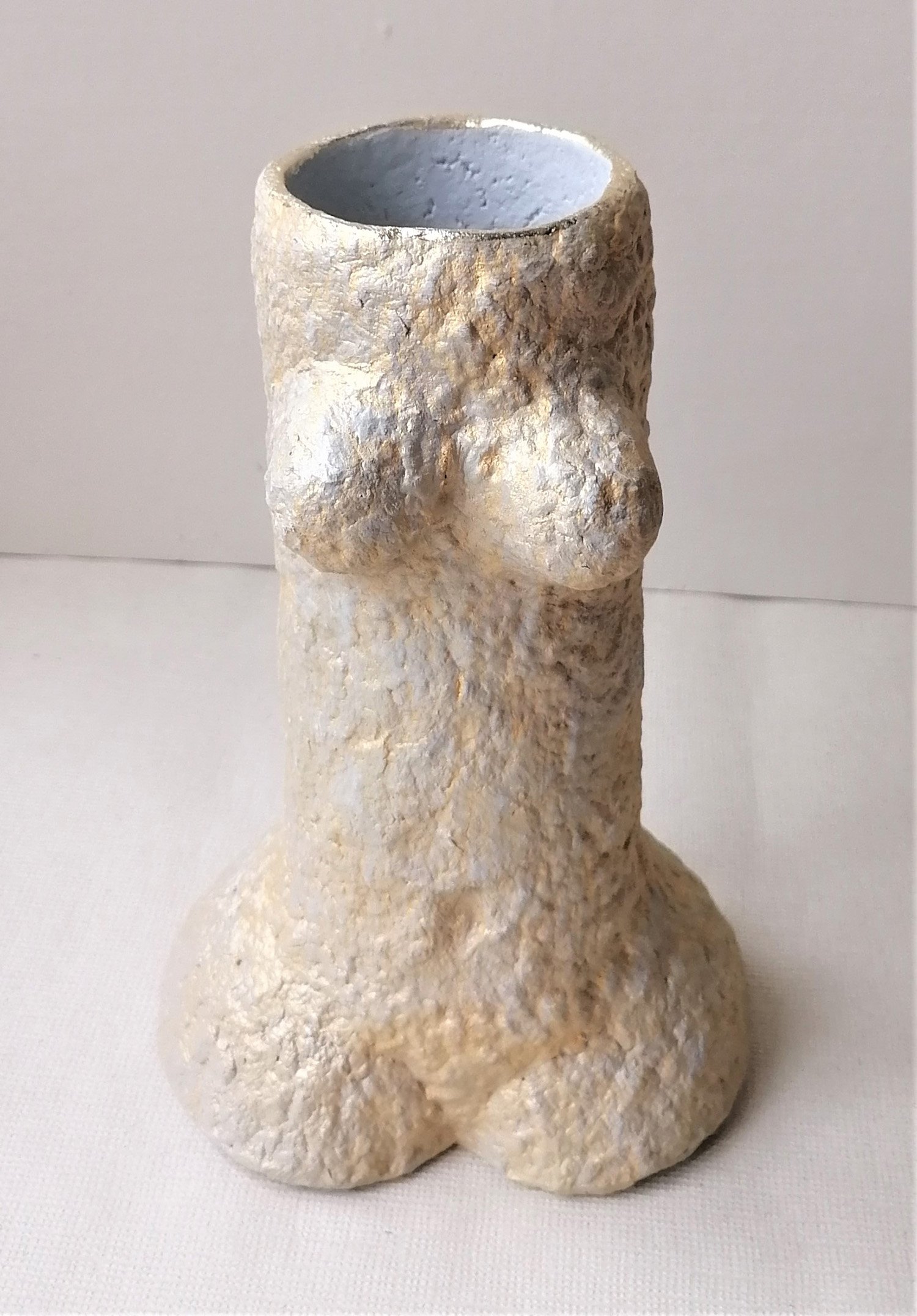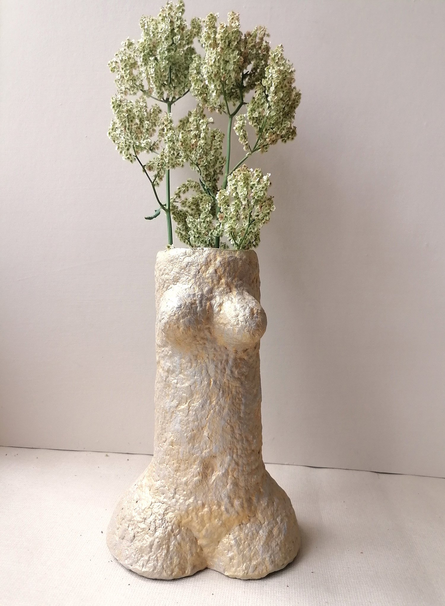Unique handmade papier mache vase inspired by the human body. A sculptural art piece perfect for dried flowers or as a standalone statement in modern interiors.