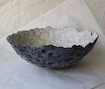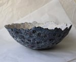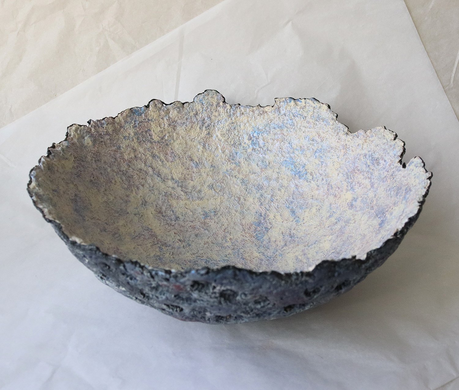 This unique sculptural bowl is handmade from recycled paper using traditional papier-mâché techniques. The textured surface and organic irregular edge create a natural, almost stone-like appearance.