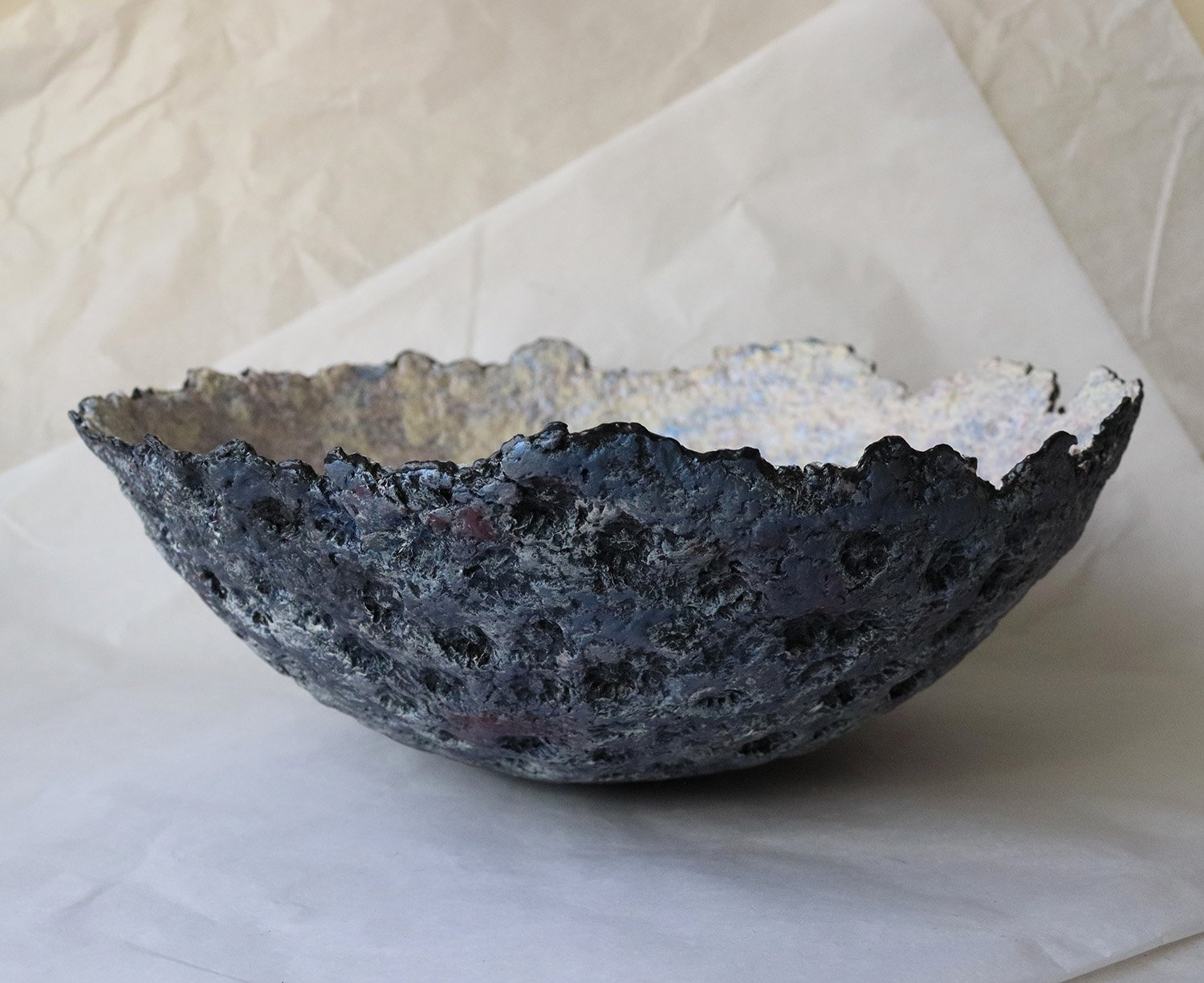 Rather than being a perfectly symmetrical bowl, this piece celebrates the beauty of texture, imperfection and handmade craftsmanship. Its sculptural form makes it as much an art object as it is a decorative bowl.