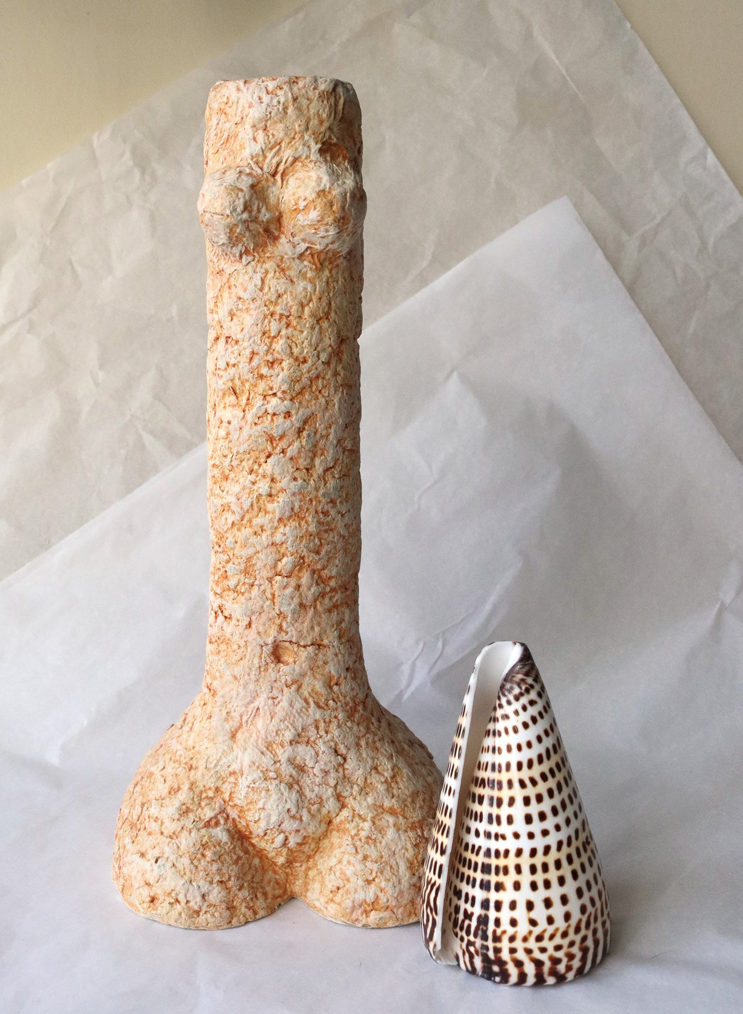Unique handmade sculptural vase crafted from recycled paper. A contemporary figurative art object inspired by the female body. Eco-friendly modern decor.