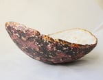 This sculptural paper mache bowl features a richly textured exterior with earthy, mineral-like tones, contrasted by a lighter interior. The irregular, organic rim gives the piece a natural, almost eroded form — reminiscent of stone shaped by time.