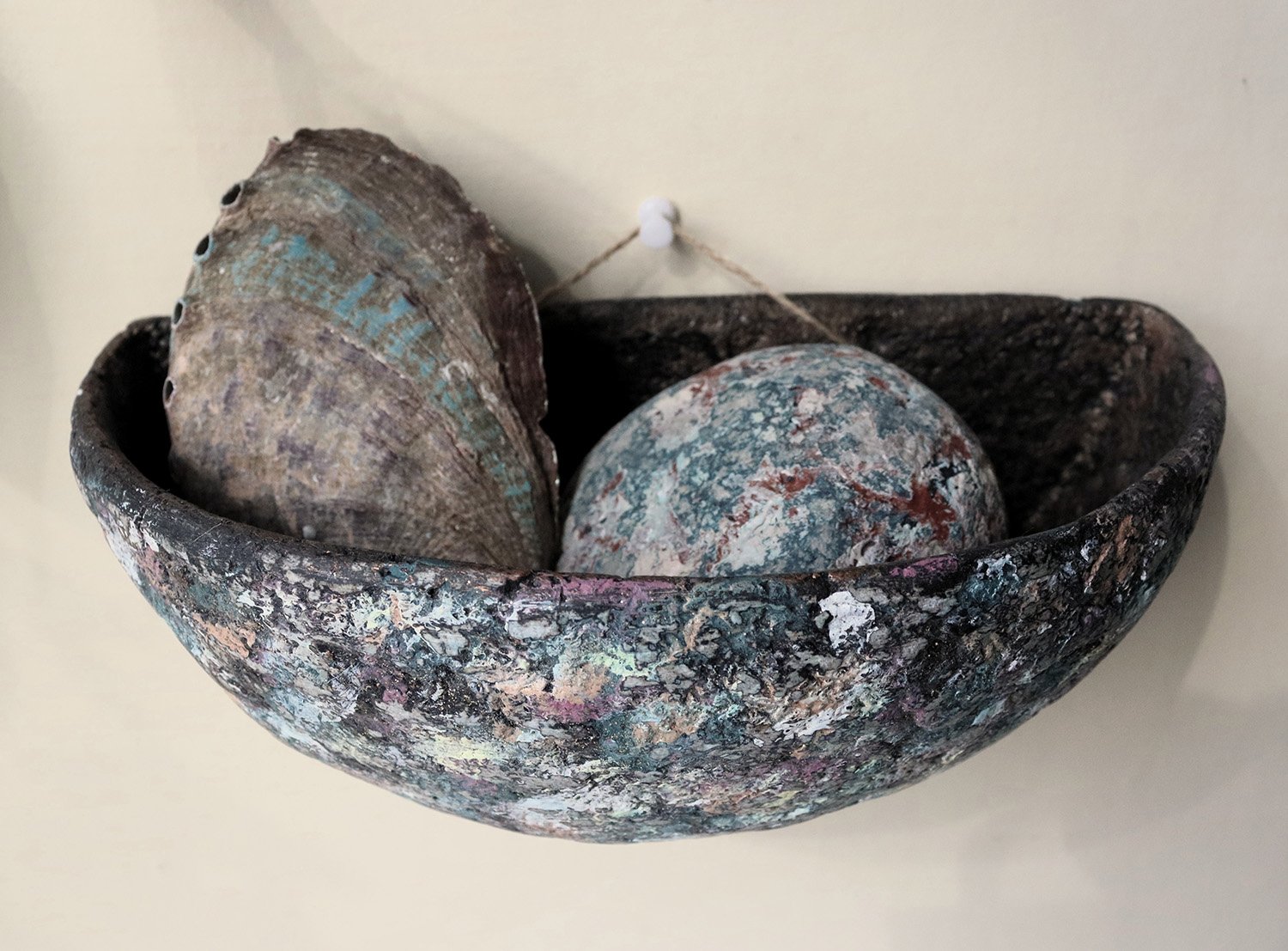 Hung on the wall, the bowl becomes a sculptural accent that can be used as a decorative wall pocket for small objects, dried flowers, or simply as a standalone art piece.