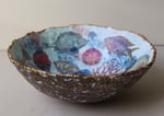 Paper Mache Bowl with Fish, Jellyfish and Seashells Decoupage - Coastal Style Decor