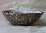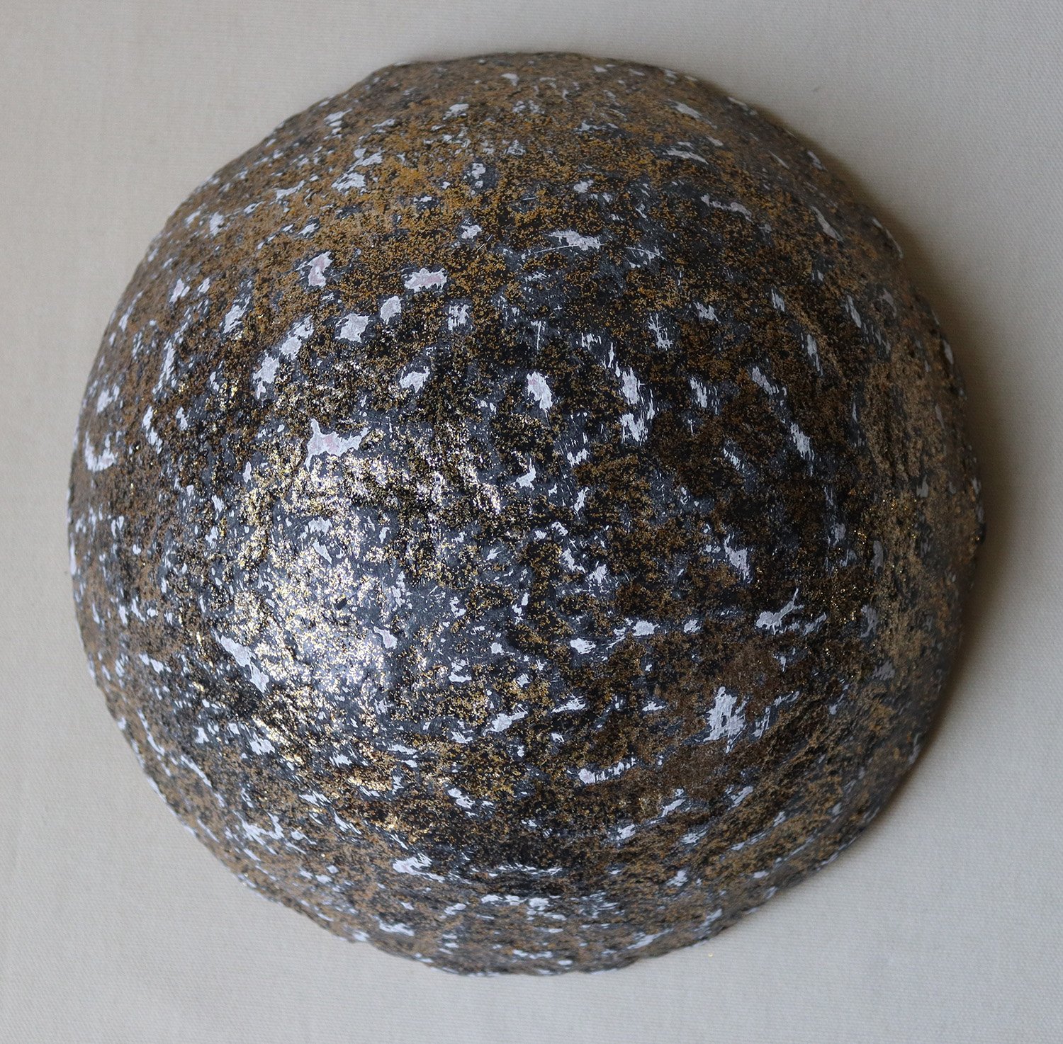 Bring a touch of the seaside into your home with this unique handmade paper mache bowl in blue and golden tones. Crafted from recycled paper, this eco-friendly piece is perfect as a decorative centerpiece, a catchall for small treasures, or a thoughtful gift for ocean lovers.