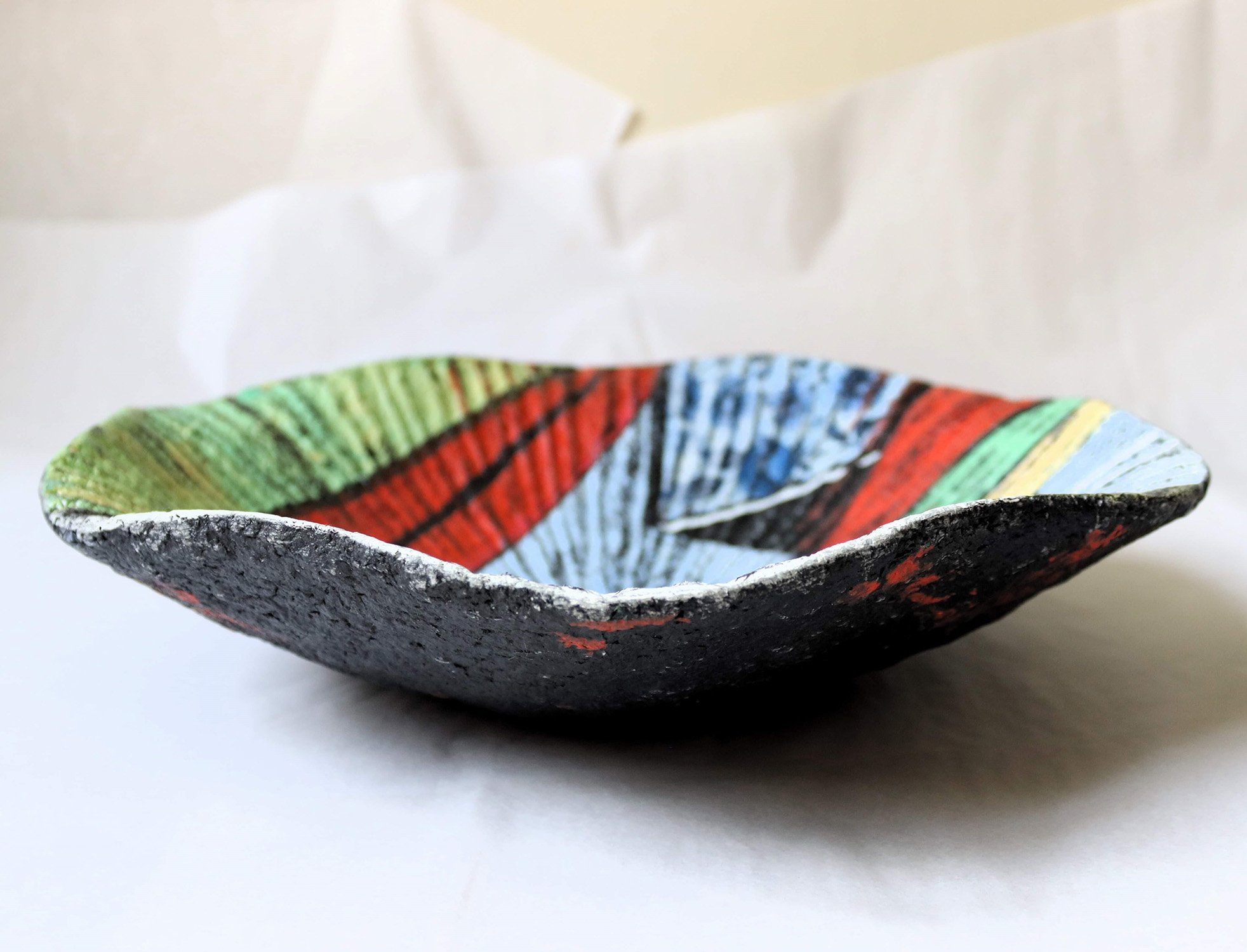 Picasso Inspired Paper Mache Bowl | Colorful Abstract Wavy Design